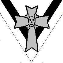 The Chancellor is the third highest ranking officer and is elected by the Council. The Chancellor shall assist the Grand Knight and Deputy Grand Knight in the performance of their duties and shall take charge during the incapacity or extended absence of both. He shall exercise a special interest in new members and members who are sick or in distress. His jewel is the Skull and Crossed Bones on the Isabella Cross, suspended from a black over white ribbon. The Crossed Bones remind us of our immortality. The Chancellor's ceremonial robe is black robe trimmed with white. He wears a white cincture with silver fringe and black mantle with white roll collar.