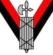 The Warden assures that all members at meetings possess the current membership card and is elected by the members of the council. He is custodian of all Council property except funds and is in charge of properly setting up the Council Chamber. He directs the activities of the Inside and Outside Guards. His jewel consists of Axe bound by Fasces and is suspended from a red over black ribbon. Guards or protectors of Roman Magistrates generally carried the Axe and Fasces as a sign of Authority. The Warden's ceremonial officer robe is black, trimmed with scarlet. He wears a scarlet cincture with silver fringe.